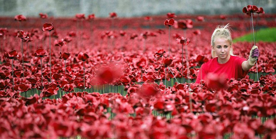 888 246 керамических цветов высадили у английского Тауэра в 2014 году. Тогда Лондон отмечал столетие Первой мировой войны. Цветы — это арт-инсталляция художника Пола Камминса и театрального сценографа Тома Пайпера. Она называется Blood Swept Lands and Seas of Red. Название заимствовали из завещания солдата, погибшего во время войны во Фландрии. Именно он называл войну "землей, орошенной кровью" и "морями красного, где ангелы боятся ступать".