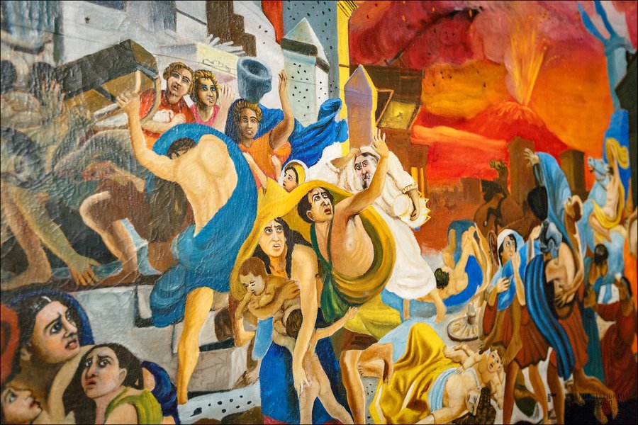Например, зал настенных росписей Полины Райко. Простая крестьянка с тяжелой, но не уникальной для того времени судьбой. Пережила смерть мужа и дочери, осталась вдвоем с сыном-алкоголиком, который допился до того, что, как это ни неправдоподобно звучит для украинской деревни с ее патриархальным укладом, бил мать. И вот, когда сын в итоге попал в колонию, а Полина Райко осталась одна, в ней в семьдесят лет вдруг проснулся дремавший до тех пор талант художника. То ли потому, что душа избавилась от страха, то ли наоборот — потому, что душа ощутила одиночество, ведь каким бы сын ни был, это все-таки сын. И она расписала свою хату картинами, которые, наверное, правильнее всего было бы назвать "оберегами" — фантастический мир, в котором смешалось небесное и земное. Мир, в котором крылатый ангел носит шапку-ушанку (может быть, это зэковская шапка-ушанка, в которой она представляла себе своего сына?).