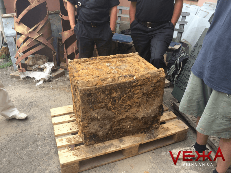Сейф привезли на задний двор Винницкого областного краеведческого музея – находку, которая весит около 500 кг, везли грузовиком.