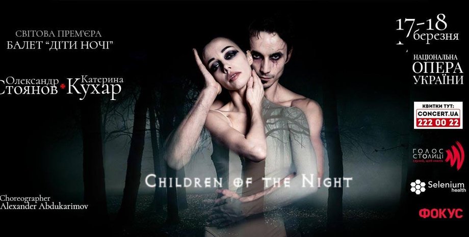 17-18 марта на сцене Национальной оперы Украины – мировая премьера одноактного балета «Children of the Night», созданного специально для украинских звезд балета Екатерины Кухар и Александра Стоянова