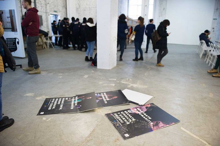 — Парни, наверное, не знали, куда идти, — предполагает моя собеседница. — Сначала они подошли к охраннику на выходе. Потом попали внутрь, но направились не к тому проекту. У нас параллельно проходило две выставки: "Шануймо різноманіття" и "Рани 360", выставка Иосифа Сивенького, где с помощью VR-очков можно было посмотреть три фильма об украинских военных. Иосиф рассказывал, что сначала парни направились именно к его выставке. Но он объяснил, что проект связан с АТО, и они ничего не тронули.