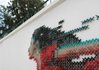 Для создания необычного произведения она использовала 700 метров шерстяной пряжи и 2300 винтов. Изображение парящей в воздухе девушки размещено на площади 2х5 м.