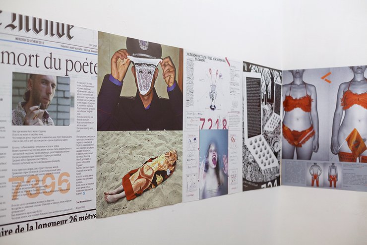 Первое, что отмечаешь на выставке "Stas и вся эта вышеупомянутая неразбериха с арт-рынком и искусством в целом", — это ее зрелищность. В большой концентрации произведения Волязловского выглядят очень впечатляюще. Текстильные работы в стиле "шансон-арт" соседствуют с музыкальными видео, а в зале с текстовой графикой — полноценными графическими новеллами — можно провести часы.