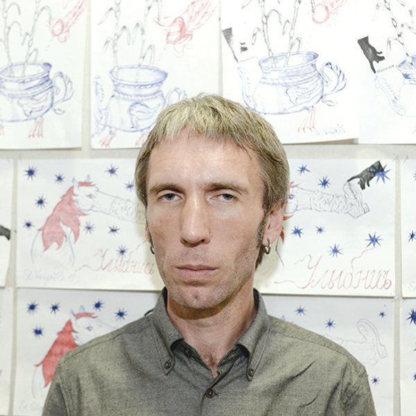 В каком бы медиуме он ни работал, а это была и графика, и живопись, и видео, и рисунки шариковой ручкой и даже чайной заваркой на текстильных объектах, к примеру наволочках (эти работы автор называл "тряпками"), визуальный язык художника угадывался безошибочно.