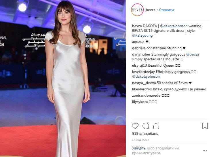 Голливудская актриса Дакота Джонсон появилась в платье от украинского дизайнера
