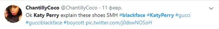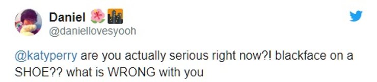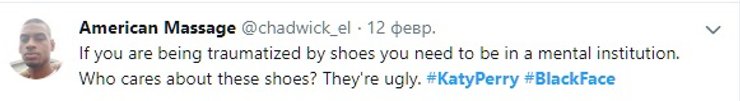 Перевод: Кэти Перри, ты серьезно? "Блэкфейс" на туфлях? Что с тобой не так?"
