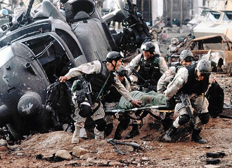 Особенность современного кино в том, что каждое десятилетие выходит фильм о войне, который определяет ее смыслы: психологические и эстетические. В 1980-е это был "Апокалипсис сегодня" Фрэнсиса Форда Копполы о войне во Вьетнаме, в 1990-е — "Спасти рядового Райана" Стивена Спилберга о высадке союзников в Нормандии во время Второй мировой. В начале 2000-х таким фильмом-заявлением стало "Падение "Черного ястреба". Ридли Скотт сделал киноверсию реального эпизода, когда американские военные провели операцию в Сомали. В военной истории это событие известно как сражение в Могадишо в 1993 году. Тогда американцы пытались захватить предводителей вооруженных формирований, участвовавших в гражданской войне, но эта операция завершилась провалом специальных подразделений США. В город вошла большая группа, однако два вертолета "Черный ястреб" сбили, 14 военных погибли, несколько десятков ранены. Режиссер снял это поражение в манере, остающейся современной и сейчас. Съемка почти документальная, герои в боевых сценах обходятся короткими выкриками или бормотанием, все внимание отдано их движению. Вдобавок режиссер максимально сокращает дистанцию между происходящим на экране и зрителем. И вы почти физически ощущаете, как в лицо несутся пыль, камни, обломки военной техники и в сантиметре от вас стреляют. Ридли Скотт сумел отобразить сущность современной войны, которую гражданское население наблюдает непосредственно, бои идут прямо в центре города, а снайперы стреляют из окон жилых домов с милыми ставнями.