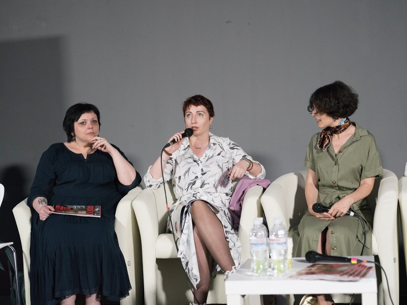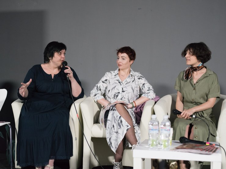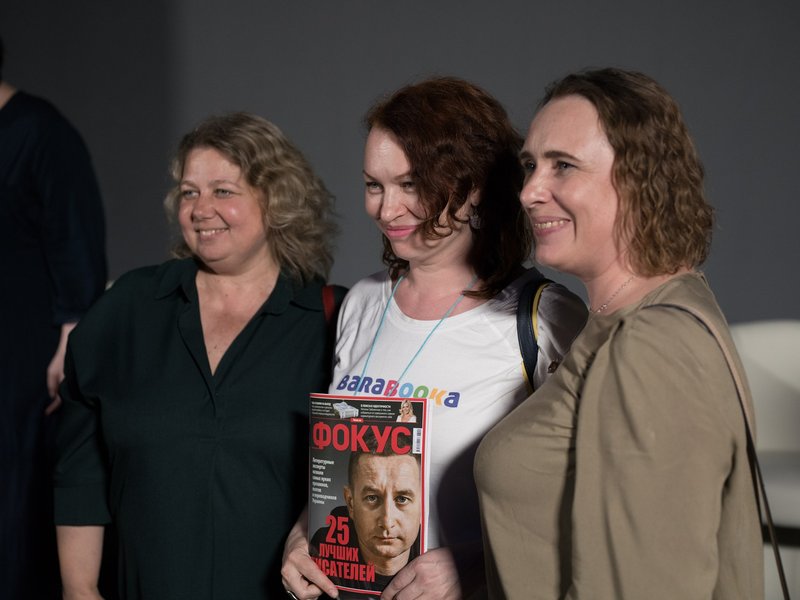 Слева направо: литературный критик и писательница Анна Улюра, писательница и поэтесса Катерина Калитко, редактор отдела культуры журнала "Фокус" Зоя Звиняцковская
