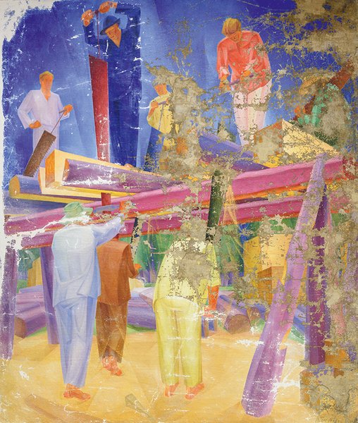 — Главная сложность заключалась в том, что полотно пострадало неравномерно. Левая часть была в относительно хорошем состоянии, а правая — сильно повреждена: оригинальный рисунок сохранился там лишь фрагментарно. Пришлось делать реконструкцию правой половины работы, то есть восстанавливать рисунок и красочный слой. К счастью, нам удалось найти фотографию "Пилярів" из журнала "Нова генерація" 1927 года, по ней я и реконструировала изображение. Поскольку фото было черно-белым, то с его помощью я могла восстановить лишь рисунок. Оттенки же подбирала, ориентируясь на пигменты, которые использовал Богомазов.