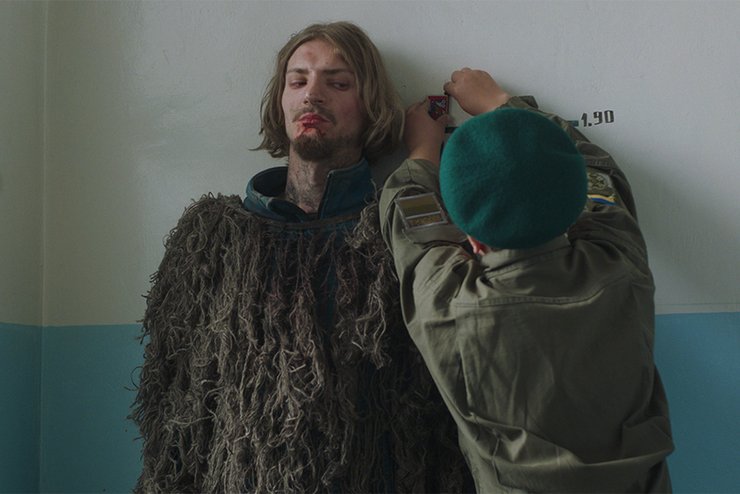 Но еще главнее то, что Тимур Ященко создает в "Черкассах" среду. В фильме формально два главных героя - Мишко и Лев. Они оба из одного села, в котором фильм и начинается. И уже сразу можно понять, что фильм не собирается никого героизировать: одного из них, сильно нетрезвого, бьют просто на улице прямо на вступительных кадрах фильма. Второй, похоронив жену и явно от отчаяния, забивает единственное оставшееся у него - больную корову, и уходит на флот. Следующие полчаса будут показывать жизнь команды на тральщике, ярко и сочно выписывая нравы и атмосферу здесь, заглядывая во все помещения корабля: от машинного отделения до офицерских кают. Этот фильм очень редко сходит на берег, как бы замыкая всех героев внутри мира самого корабля. Его пространство - это узкие корридоры и тесные помещения, звуки двигателей из машинного отделения и моря. Это важно. Когда придет март 2014 года и Крым начнут захватывать "зеленые человечки", корабль останется фактически сам по себе – без приказов сверху и четкого понимания что делать. Все остальные корабли захвачены или перешли на сторону России. И в этот момент команда и командование могут полагаться только на свое понимание того, что правильно, а что нет. И мы должны привыкнуть к этой очищающей изоляции, чтобы по итогу часа фильм задал единственно правильный вопрос о том сдаваться или нет: а какой стране мы принимали присягу?