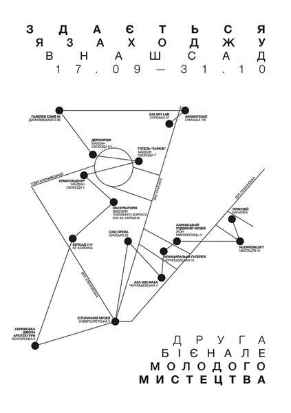 Детская программа: галерея HudpromLoft, ул. Искусств, 15; студия Aza Nizi Maza, ул. Чернышевского, 4; студия D16 art lab, ул. Сумская, 67.