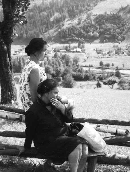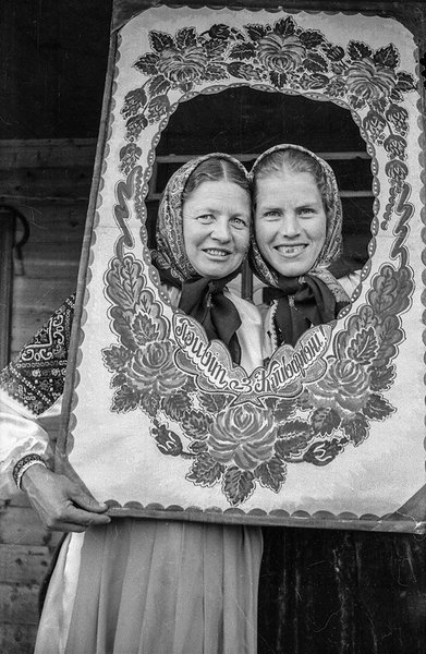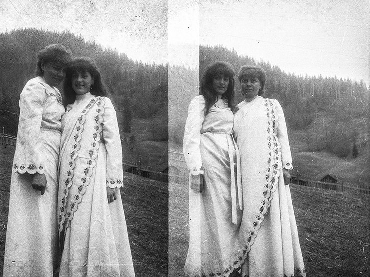 Фотография, которая ярко визуализирует изменения во времени, моде, диалог между городом и селом, между поколениями, между традициями и новыми модными веяниями. Верховинский регион верен традициям: даже сейчас во время празднования Пасхи или Рождества, свадьбы или похорон люди одеваются в национальную одежду, тем самым подчеркивая связь времен. Интересно то, как Параска прослеживает изменения и неслучайно комбинирует подобные портреты. Две женщины отличаются друг от друга всем: прической, длиной юбок, украшениями и стилем, но в то же время их объединяет фон — гуцульский ковер и деревянная хата, которые отсылают к географии и истокам.
