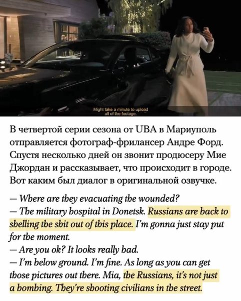 Авторы сериала вспомнили о событиях в Украине в четвертом эпизоде. Согласно сюжету, фотограф Андре Форд отправляется в Мариуполь и созванивается со своим продюсером Мией Джордан. Во время видеозвонка персонаж находится в больнице: видно, как вокруг суетятся врачи. Он описывает бои в городе — эту часть россияне перевели по-своему.