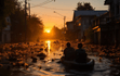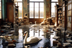 На выставке представлены работы, в которых изображены видения автора вокруг теракта на Каховской ГЭС. Они были завершены видением искусственного интеллекта.