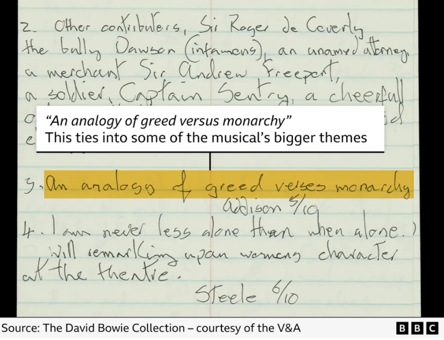 Заметки для мюзикла были найдены в кабинете Боуи в Нью-Йорке. Ключи от этого помещения были только у самого музыканта и у его личного помощника.