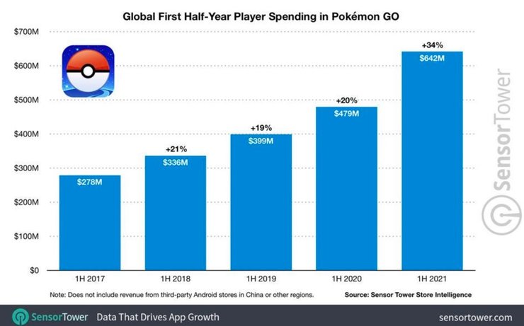 Согласно отчету аналитиков, в этом году компания увеличила расходы: в течение за первой половины 2021 года она потратила $642 млн, что на 34% больше, чем в предыдущем году. За весь 2020 год Pokemon GO получила выручку в размере $1,2 млрд, что на 41% больше, чем в 2019 году из-за карантинных мер. Разработчикам пришлось предпринять некоторые меры, чтобы изменить игру, адаптировав под новые "карантинные" правила жизни.