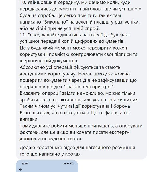 "Все операции фиксируются и становятся доступными пользователю. Нет способа, как можно пошерить документы через "Дію", не зафиксировав эту операцию в разделе "Подключенные устройства". Удалить операции оттуда невозможно, можно сделать только сессию неактивной, но вся история останется. Таким образом все чувствительные действия пользователя и упаси боже мошенника, четко фиксируются", — подчеркнул Евгений Горбачов.