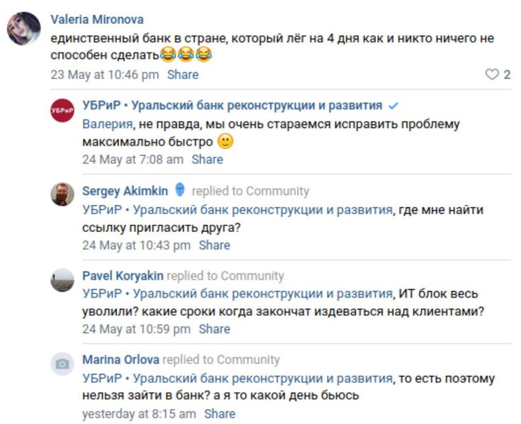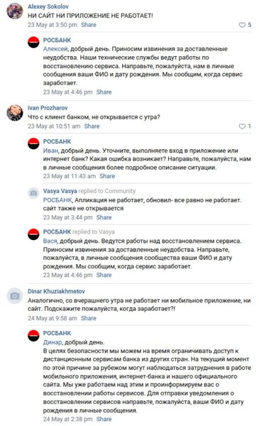 Как выяснил Фокус, за последние дни с проблемами столкнулись клиенты нескольких российских банков, в том числе "Интерпрогрессбанка", "Росбанка", "Уральского банка реконструкции и развития" (УБРиР), "Москоммерцбанка", "Российского национального коммерческого банка", "Челябинскинвеста", "Банка Урал ФД". Пользователи социальной сети "VK" в комментариях жалуются на неработающие сайты или проблемы с мобильными приложениями, из-за которых они не могут воспользоваться услугами и совершать операции онлайн. Службы поддержки обещают оперативно исправить ситуацию, но по словам самих россиян, в случае с "УБРиР" технически работы заняли более четырех дней.
