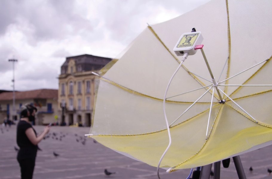 В случае с Bi0film.net роль бактерий выполняют люди со специальными антеннами для усиления WiFi-сигнала, сделанными в виде зонта. Они подключаются к мини-серверам, ретрансляторам или маршрутизаторам и значительно увеличивают зону покрытия сигнала. ПО основано на программе Эндрю Макнила с открытым исходным кодом. Зонты-антенны формируют децентрализованную интернет-сеть на обширной площади, например, в определенном районе города. Это поможет проводить акции протеста во время пандемии или в других условиях, когда невозможно объединиться в большую толпу на улицах.