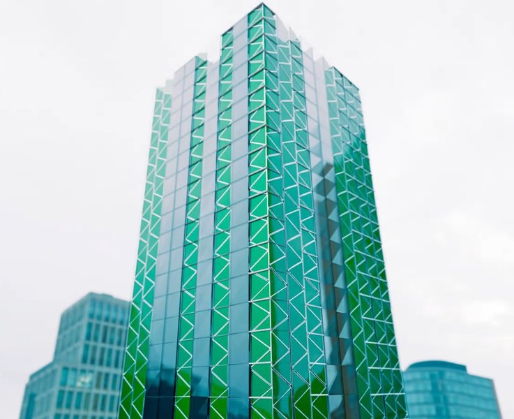 Идея использовать емкости с водорослями для зданий не нова, еще в 2013 году компании Splitterwerk Architects и Arup решили построить в Гамбурге (Германия) здание под названием BIQ, покрыв около 200 кв. м специальными "живыми" панелями вместо окон. Внутри плоского резервуара поместили плотный слой биомассы из воды и особых водорослей, который захватывает углекислый газ, пропускает через себя и под воздействием солнечного света выполняют процесс фотосинтеза. В результате вырабатывается кислород, на каждый фунт (около 450 г) приходится два фунта газа. Масса органической структуры увеличивается, поэтому излишки можно время от времени извлекать и использовать в качестве удобрения.