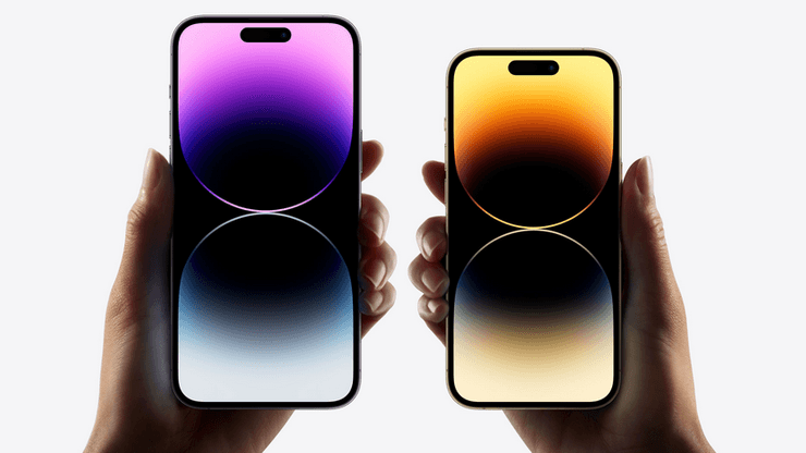 Линейка Pro не получила существенных внешних изменений: два размера диагонали – 6,1 и 6,7 дюймов, прямоугольная форма с закругленными углами. Цветовая гамма представлена в четырех цветах: космический черный, серебристый, золотой и фиолетовый. Варианты объема памяти: 128, 256, 512 Гб и 1 Тб.