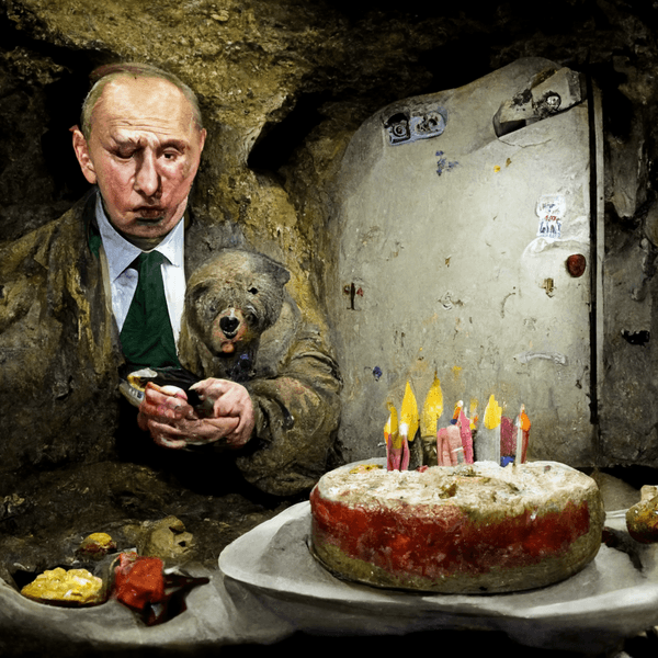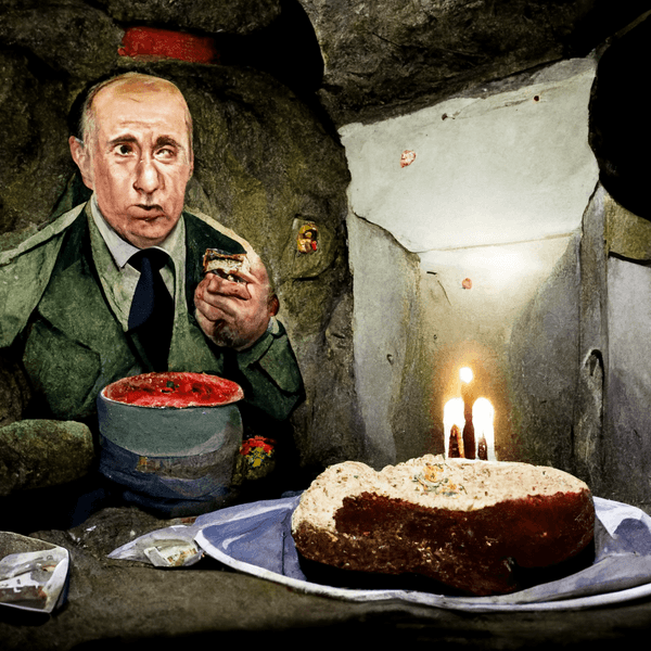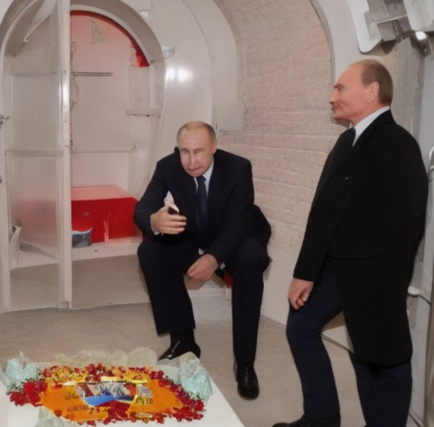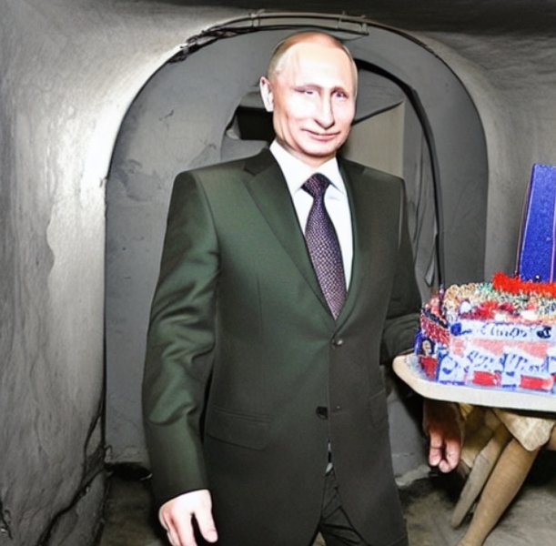 7 октября президент России Владимир Путин отмечает 70-й день рождения. Фокус с помощью нейросетей Stable Diffusion и Midjourney представил, как глава страны-агрессора празднует юбилей в бункере.