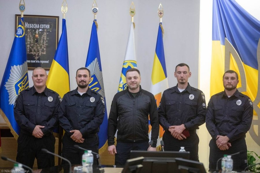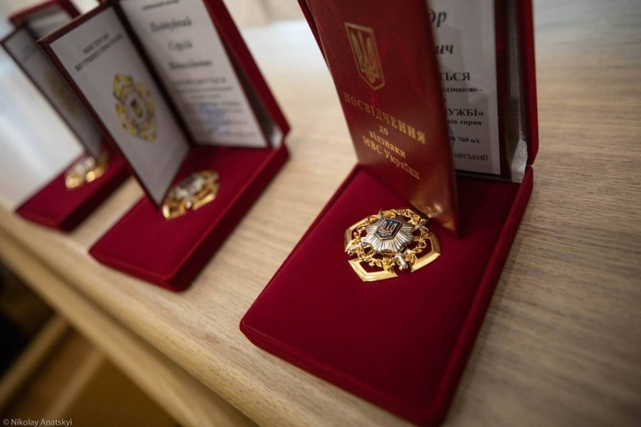 Министр внутренних дел Денис Монастырский наградил сотрудников полиции, вручил им нагрудные знаки "За отвагу в службе". По его словам, в тот день правоохранители, вооруженные автоматами, выполнили 2% работы всего ПВО Украины.
