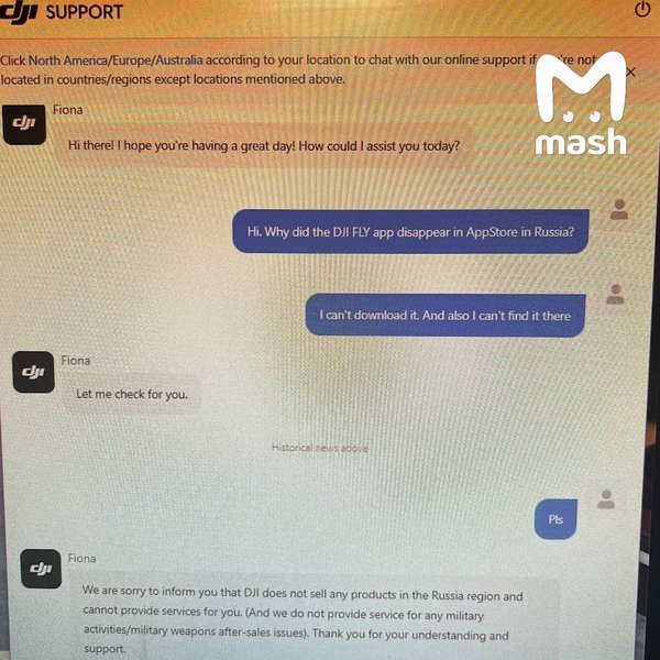 В комментарии Telegram-каналу Mash служба поддержки DJI заявила, что больше не продает свои дроны и сопутствующие продукты в Россию и не предоставляет услуги российским пользователям. "Мы не предоставляем услуги для какой-либо военной деятельности и создания оружия", — подчеркнули в компании.