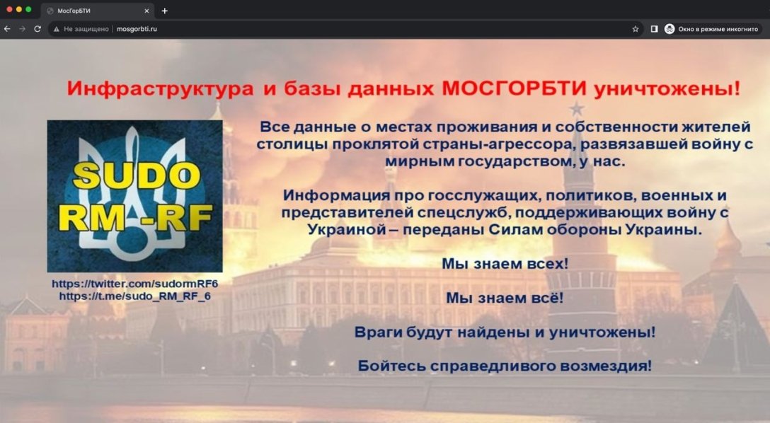 Информация об общественных деятелях, политиках, военных и представителях спецслужб РФ передана Силам обороны Украины. Сайт МосгорБТИ после атаки перестал работать, а в самой структуре никак не прокомментировали инцидент.