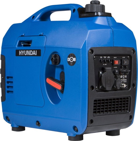Генератор Hyundai HHY1050Si также работает на бензине, имеет входную мощность 1.2 кВт и номинальную 1 кВт. Его бака на 2,5 литра хватит для 4 часов непрерывной работы. Веси аппарат 11,5 килограмм.