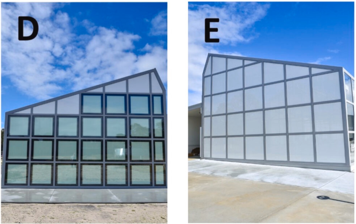 Для проверки своей технологии специалисты спроектировали и построили в Перте (Австралия) теплицу с очень прозрачными фотоэлектрическими окнами, размещенными на крыше и стенах. Она состояла из четырех комнат, каждая длиной 8 м и шириной 6 м. Комната №1 была застеклена обычным ультрапрозрачным стеклом с низким содержанием железа, а комнаты №2, №3 и №4 использовали солнечное стекло. Оно имело прямое пропускание видимого света (VLT) около 60% и общее (прямое и рассеянное) VLT около 70%, при эффективности преобразования энергии около 3,3% и выходной электрической мощности 30–33 Вт-пик/м2.