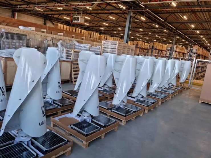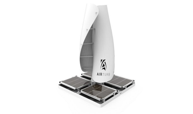 Вертикаьная ветряная турбина AirTurb Model One со встроенными солнечными панелями может достигать мощности в 500 Вт.