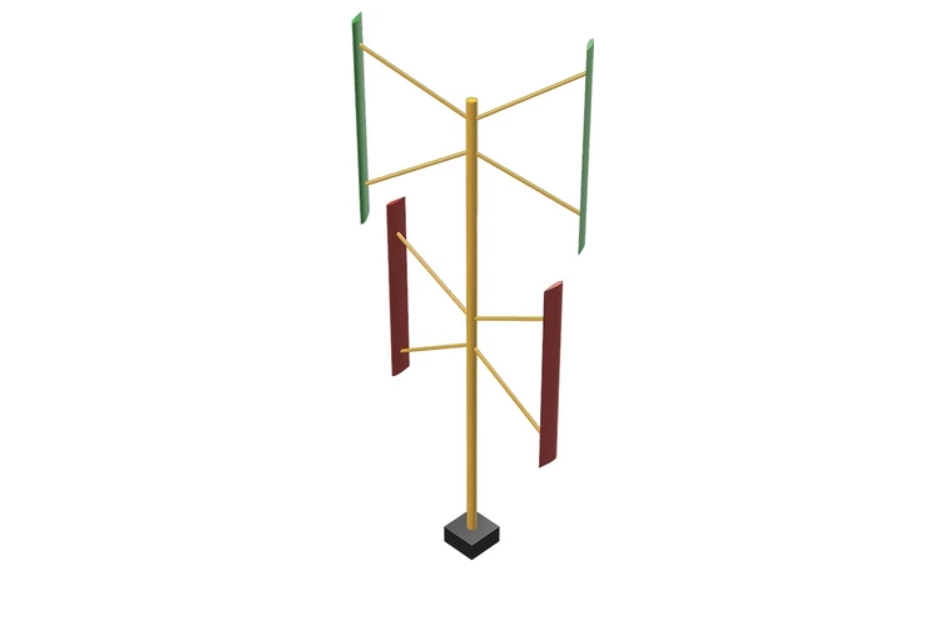 Благодаря двум парам лопастей, вращающихся в разных направлениях, эффективность повысилась на 14% по сравнению с традиционными вертикальными ветрогенераторами.
