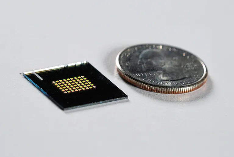Чтобы спроектировать камеру и изготовить чип Хайде и его студенты объединили усилия с экспертами Вашингтонской лаборатории нанотехнологий. Вместо использования традиционной стеклянной или пластиковой линзы команда интегрировала 50 сложенных друг на друга плоских и легких металинз, которые используют микроскопические наноструктуры для управления светом. Эти металинзы дублируют оптическую нейронную сеть, систему ИИ, вдохновленную мозгом.