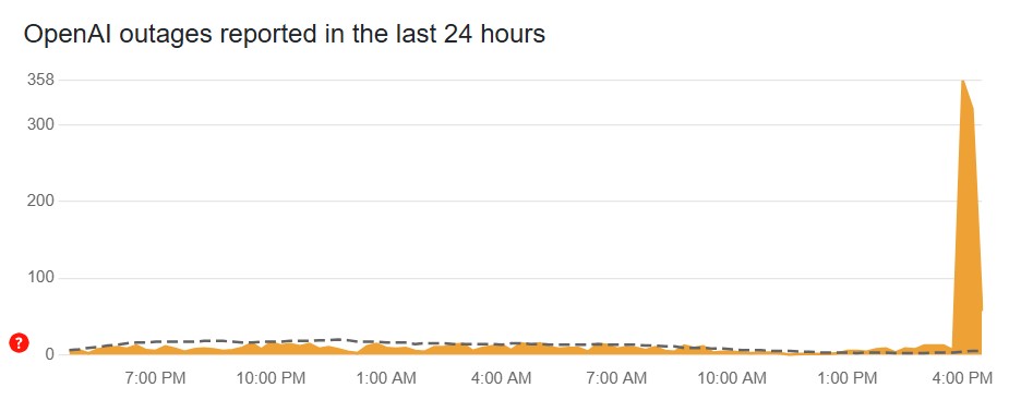 Об этом свидетельствуют данные сервиса Downdetector. Согласно сайту, проблемы с ChatGPT наблюдались по всему миру без привязки к региону или континенту.