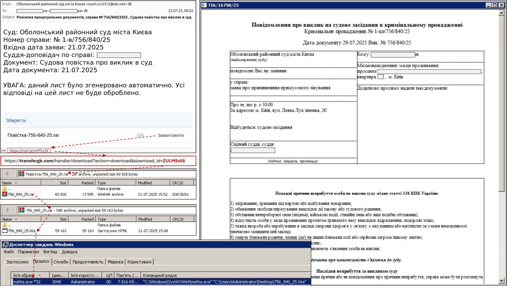 Киберпреступники преимущественно использовали UKR.NET и выдавали письма за отправку "судебных повесток". На самом деле там содержались ссылки на легитимный файловый сервис, измененные с помощью сервисов, которые сокращают URL.