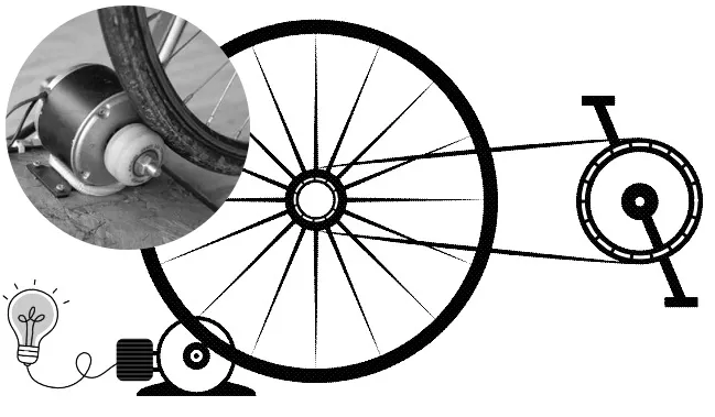 Для преобразования этой механической энергии в электричество коллекторный двигатель (двигатель постоянного тока с постоянными магнитами) отлично подходит в качестве генератора, обеспечивая надежную работу и простоту. В качестве альтернативы можно использовать велосипедную динамо-втулку вместо коллекторного двигателя, но это требует определенных навыков.