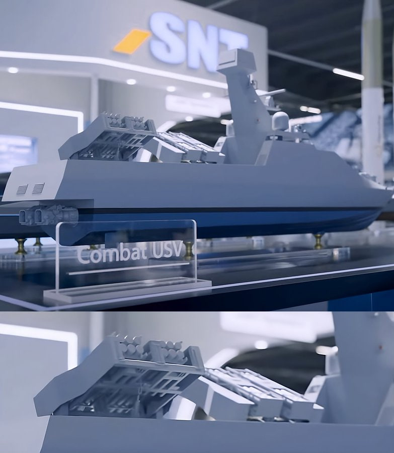 Южнокорейская компания Hanwha представила на выставке в Польше морской беспилотник Combat, вооруженный двумя пусковыми установками MLRS K239.