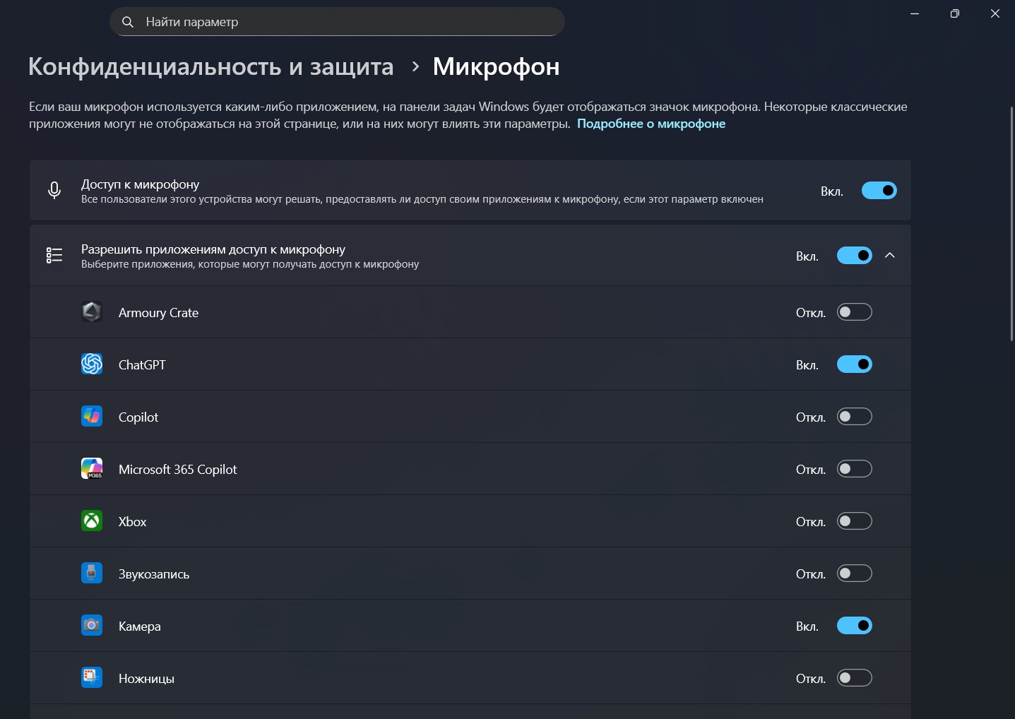 Некоторые утилиты запрашивают доступ к камере и микрофону, даже если это не требуется для их функционирования. Это создает потенциальную угрозу вашей безопасности. В разделе "Конфиденциальность и защита" поочередно зайдите в меню "Камера" и "Микрофон". Изучите списки приложений и отключите доступ для всех подозрительных или ненужных программ.