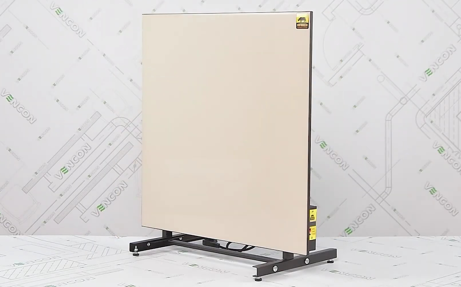 Обогреватель весьма компактный благодаря толщине 12 мм поэтому его можно установить прямо на стену. Можно приспособить и на полу, для этого в комплекте идут ножки.