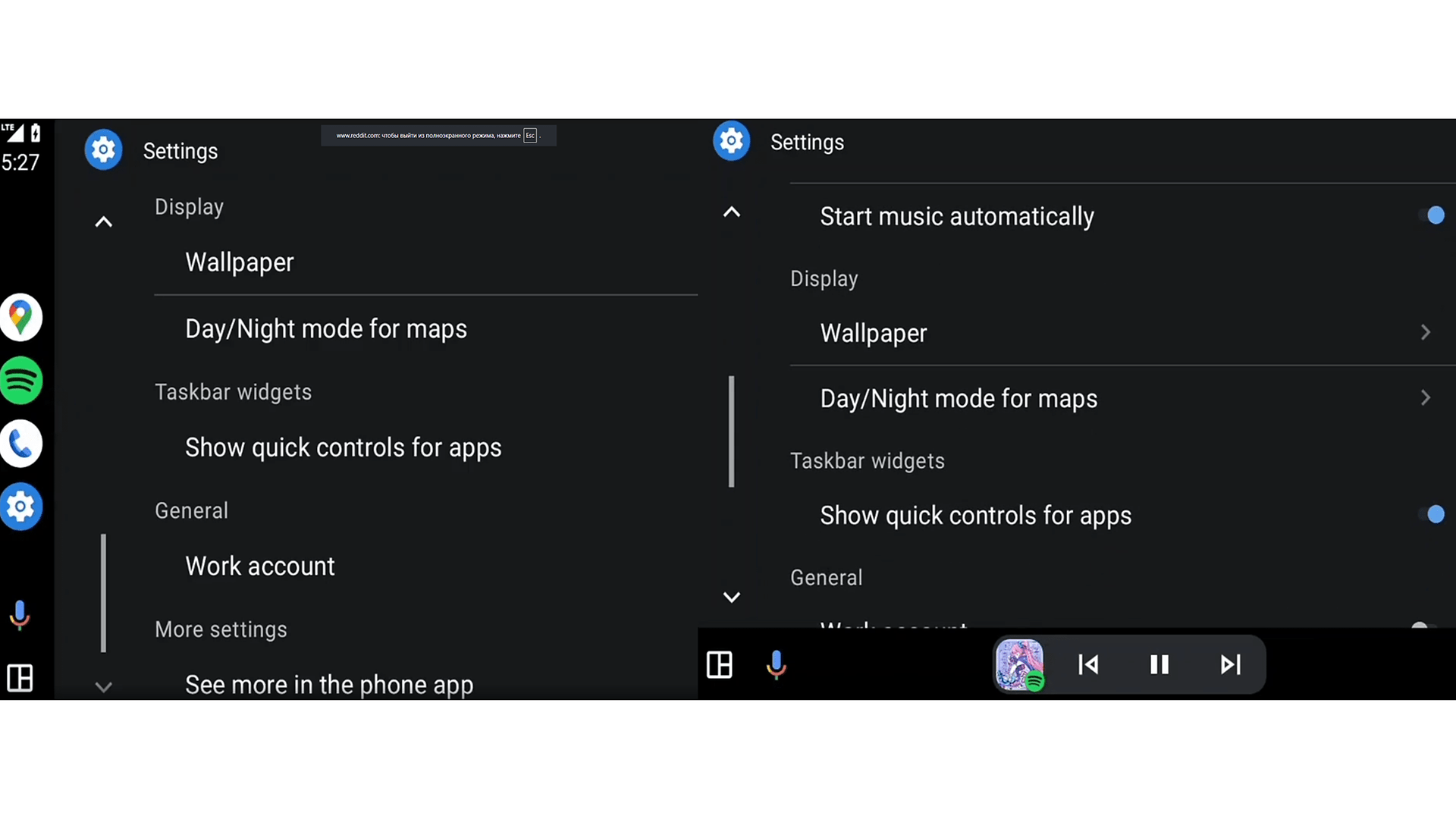 Быстрые элементы управления (Quick Controls) — это виджет, который появляется на панели задач, когда одно из приложений (например, карты) развернуто на весь экран. Он позволяет управлять музыкой (переключать треки, ставить на паузу) или просматривать навигационные подсказки, не выходя с главного экрана программы.