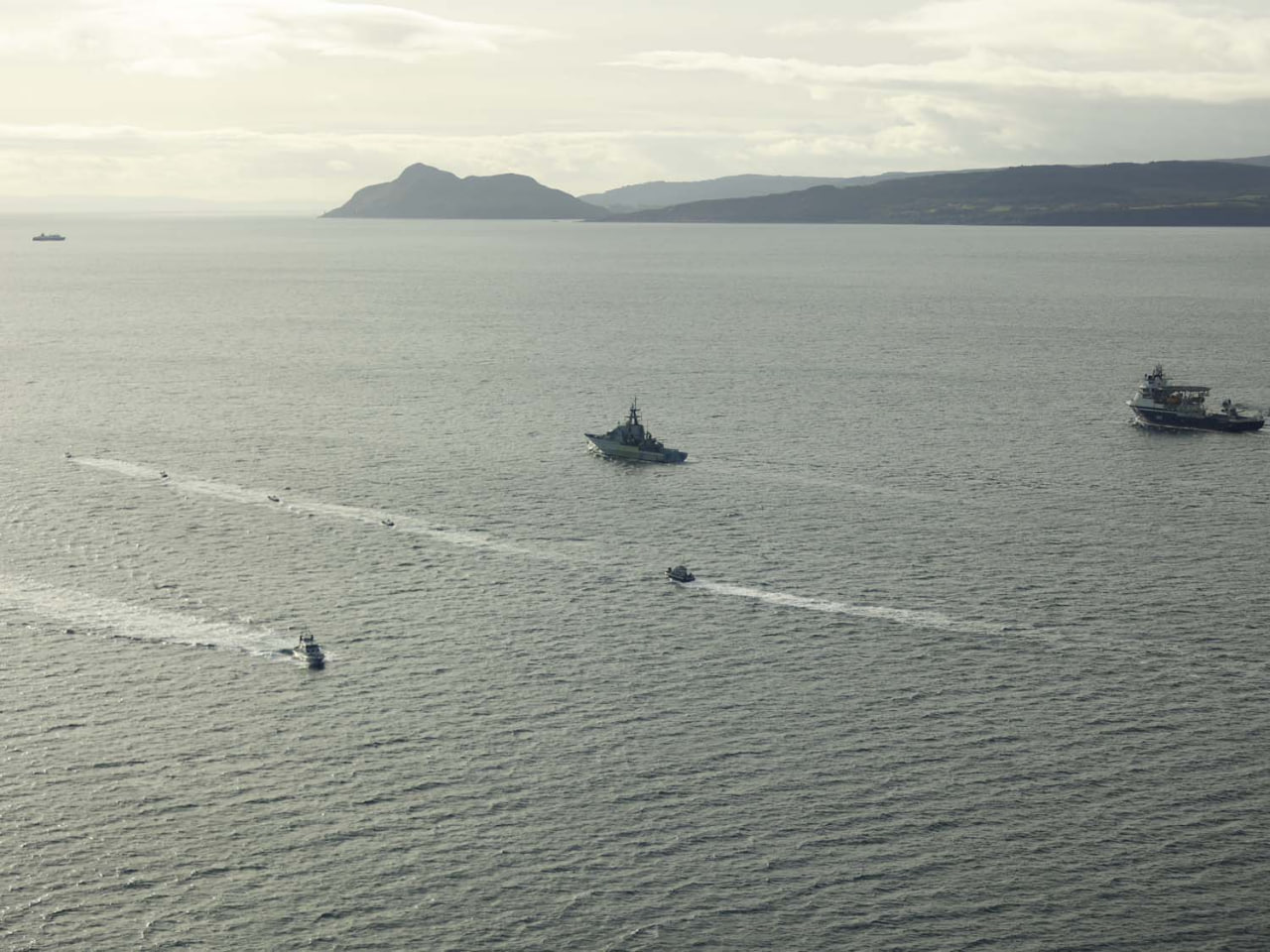 Королевский флот Великобритании испытал пять беспилотных катеров Rattler для сопровождения военных кораблей во время испытаний у побережья Шотландии.