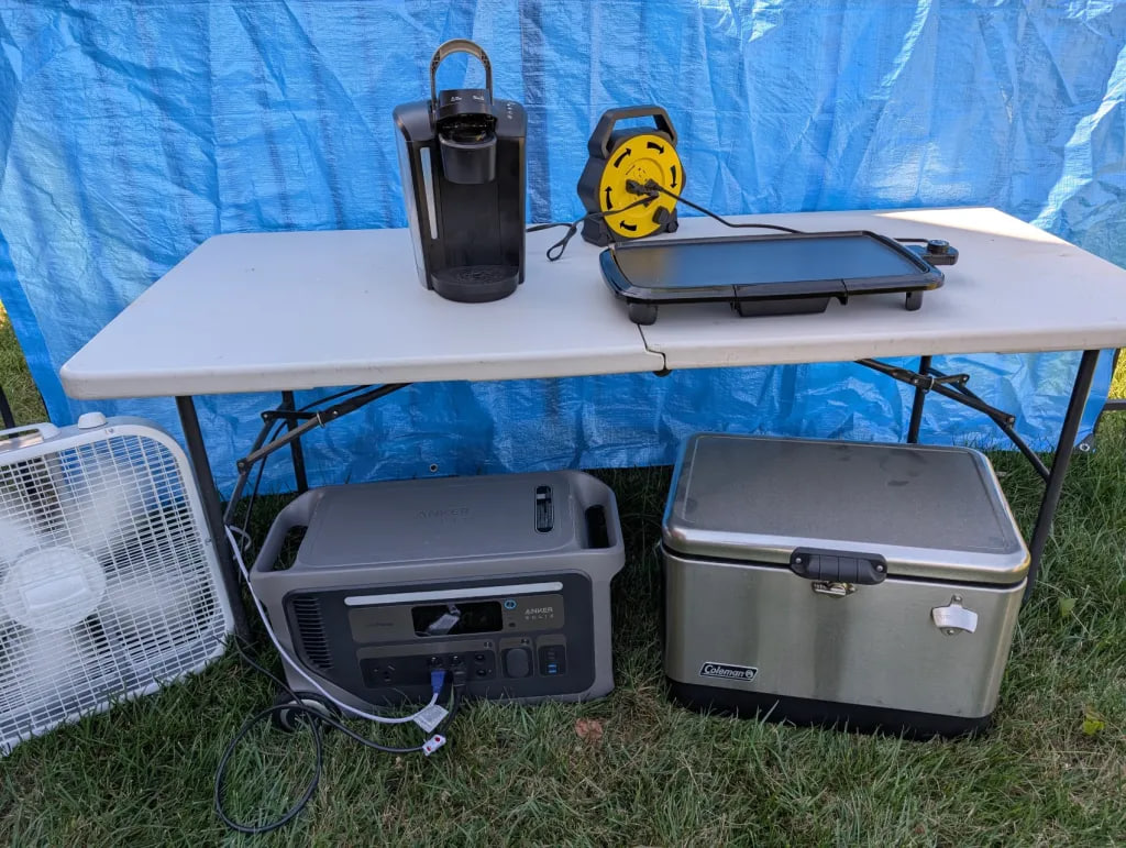 По словам эксперта, было важно испытать полную мощность Anker SOLIX F3000, учитывая ее характеристики. В конце концов он взял зарядную станцию с собой в четырехдневный поход, чтобы питать смартфоны, сковородку, кофеварку, фен, вентилятор и даже фритюрницу. Кроме того, она служила основным источником освещения палатки.