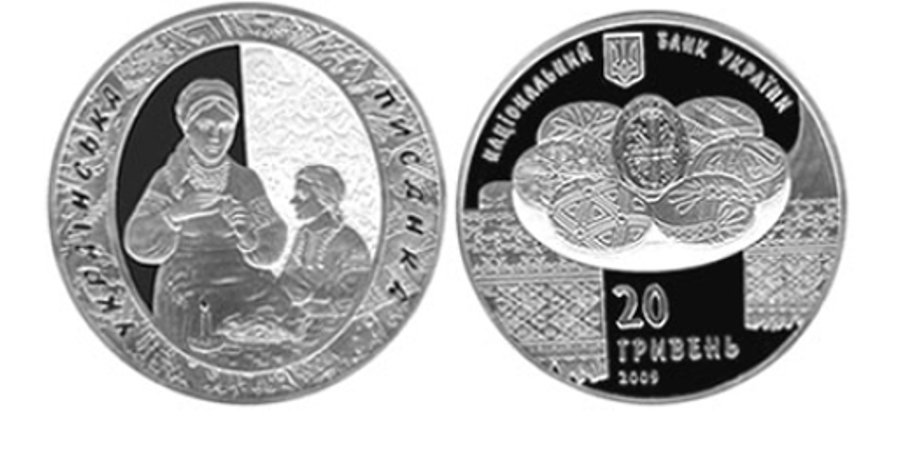 Монета "Украинская писанка" номиналом 20 гривень изготовлена из серебра. Дизайн монеты разработали Анатолий Демьяненко и Владимир Атаманчук.
