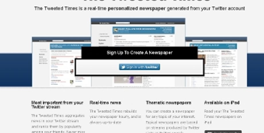 Как передает Лента.ру, сервис The Tweeted Times анализирует ссылки, которыми поделились в микроблогах друзья пользователя, выделяет самые популярные и объединяет их в единую "онлайн-газету". Наряду с собственной можно просматривать "газеты" других пользователей.