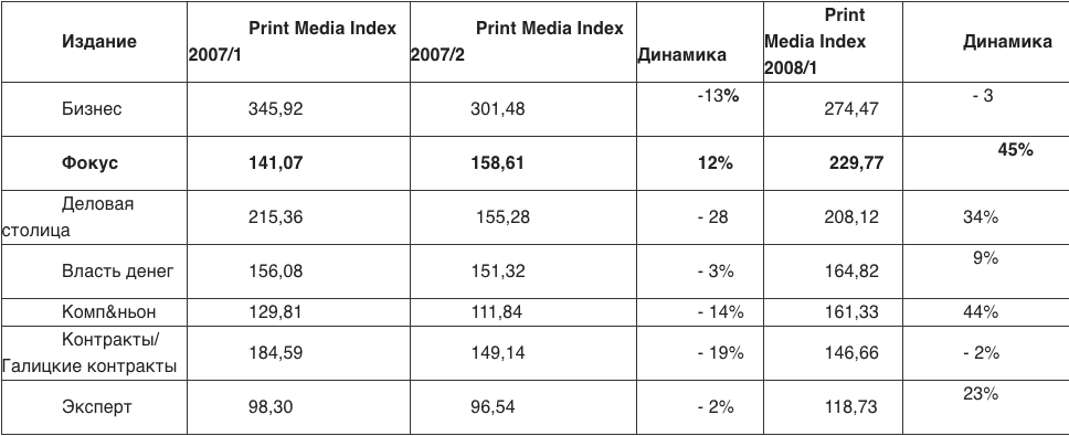 Журнал "Фокус" обогнал ближайших конкурентов в деловом сегменте