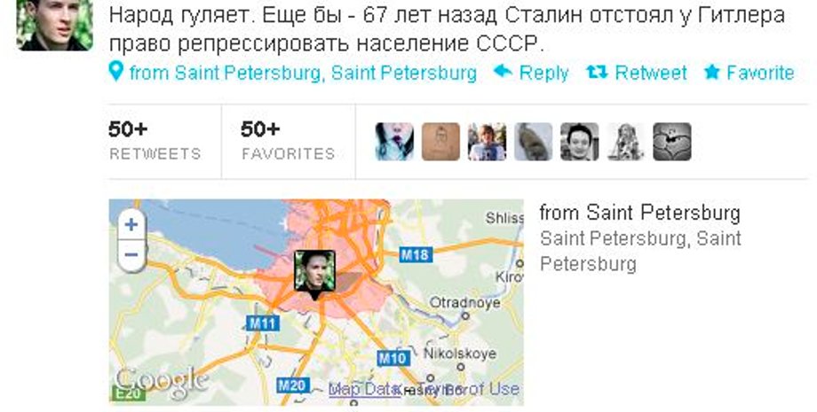 После этого в Twitter началась дискуссия по поводу того, что именно празднуют люди 9 мая - День Победы или день порабощения коммунизмом.