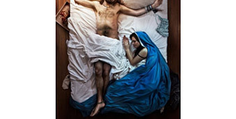 изображающие Христа и Богродицу, лежат на кровати, а вокруг них
