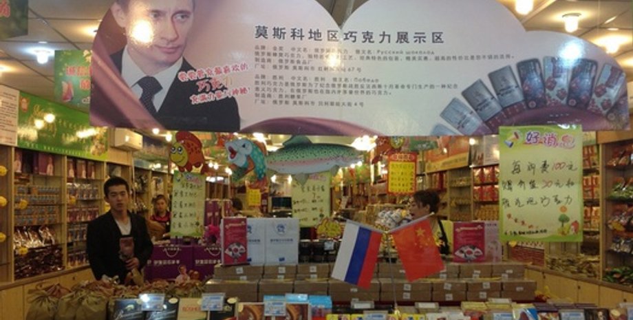 Российские журналисты, прибывшие в город в ходе официального визита в КНР председателя Госдумы Сергея Нарышкина, выяснили, что хозяева лавочки, довольные своим креативным решением, написали на плакате с Путиным призыв покупать российский шоколад.