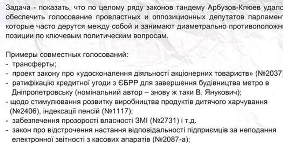 Найем считает интересным также тот факт, что соискателям надо рассказывать не о работе Арбузова в правительстве, а об "эффективности управления парламентом". Также он привел тезисы, которые предлагаются для освещения в блогосфере.